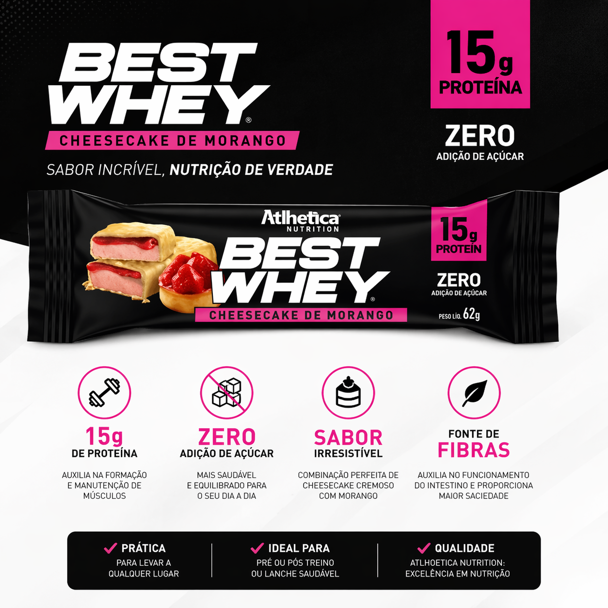 Por que escolher a Best Whey Bar Cheesecake de Morango?
