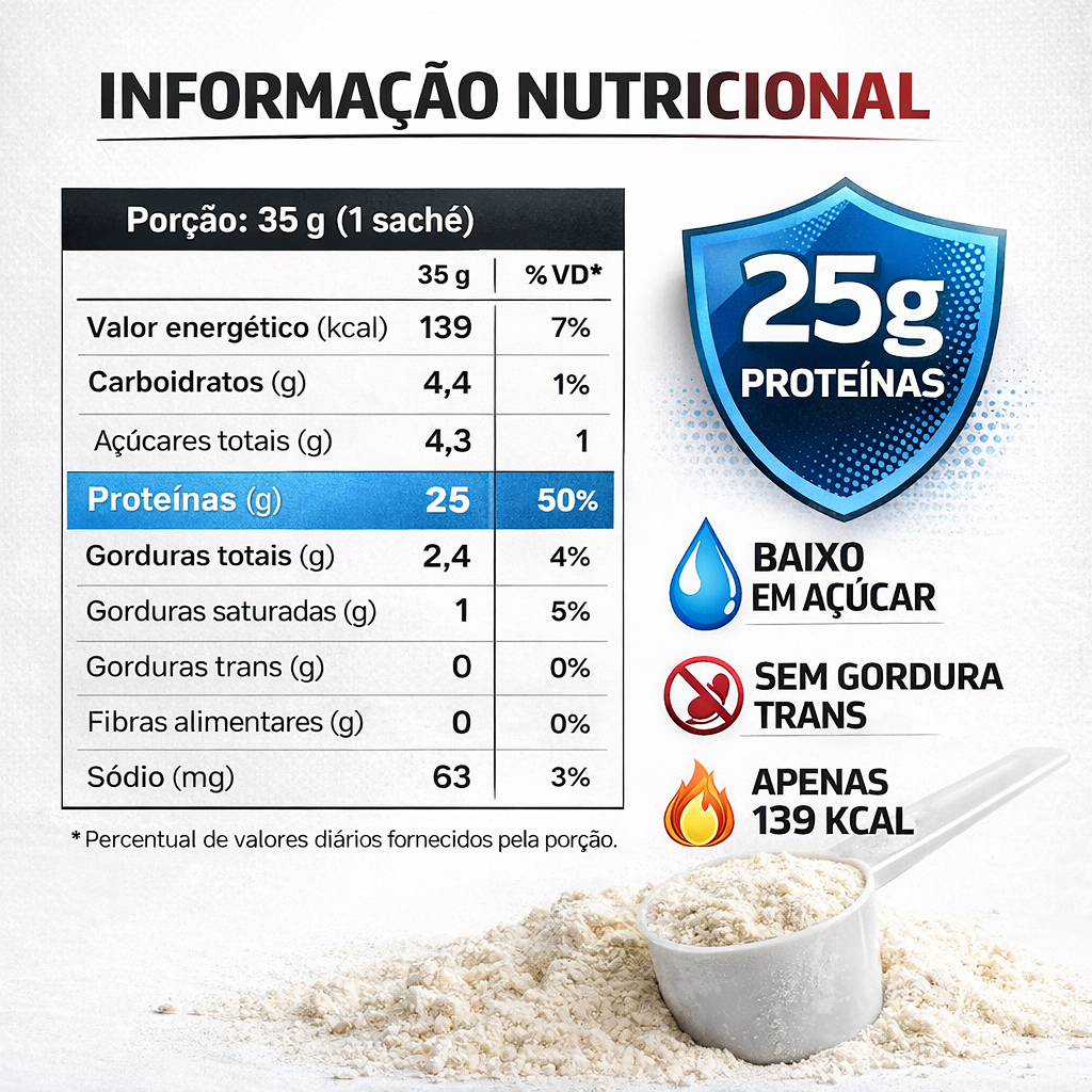 Sua fórmula combina proteínas de alto valor biológico, garantindo uma absorção eficiente e resultados consistentes para quem leva a sério a alimentação e o treino.