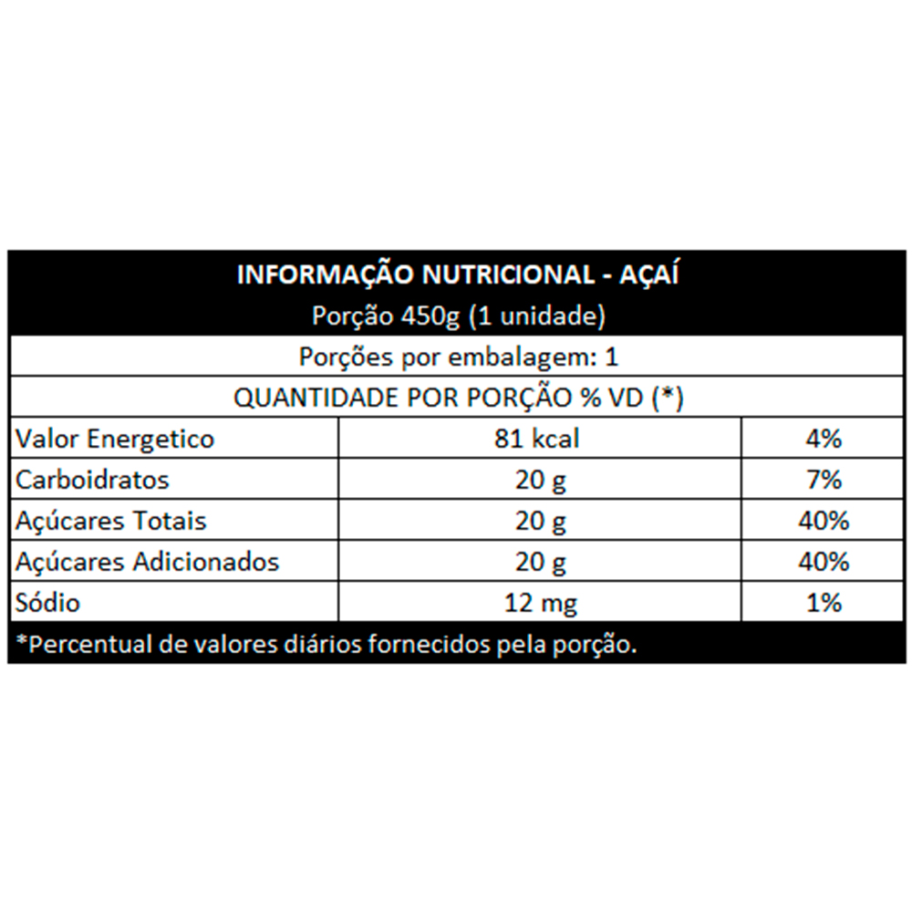 Tabela Nutricional: