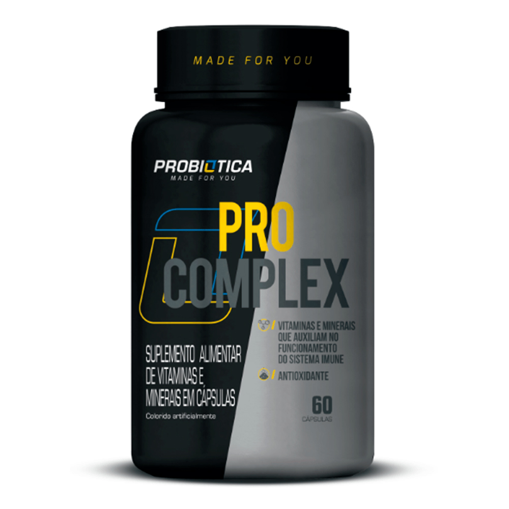 O Pro Complex da Probiotica é um suplemento multivitaminico que oferece uma gama de vitaminas e minerais que exercem papel fundamental no funcionamento do nosso organismo, as vitaminas e minerais participam de diversas funções vitais para o nosso organismo elas são comumente encontradas nos alimentos ou através de suplementos multivitaminicos, o ideal é que o consumo seja feito pelos alimentos, mas infelizmente nem sempre é possível sendo necessária a suplementação para suprir eventuais carências.