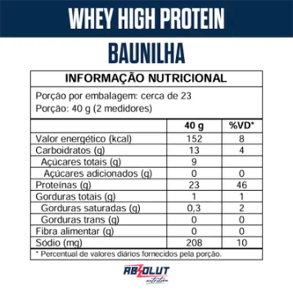Whey High Protein Absolut Nutrition: 23g de Proteína Pura por Dose